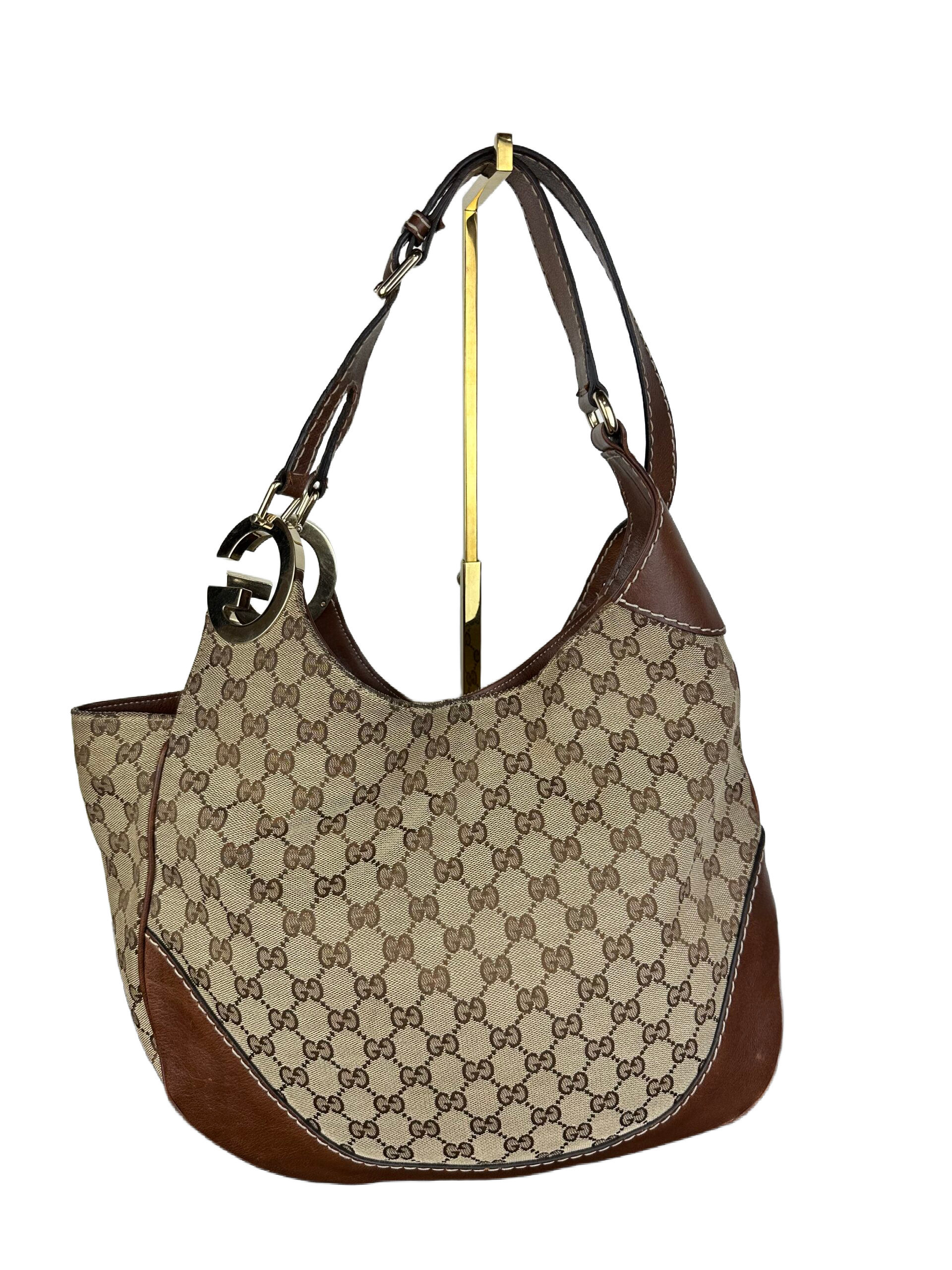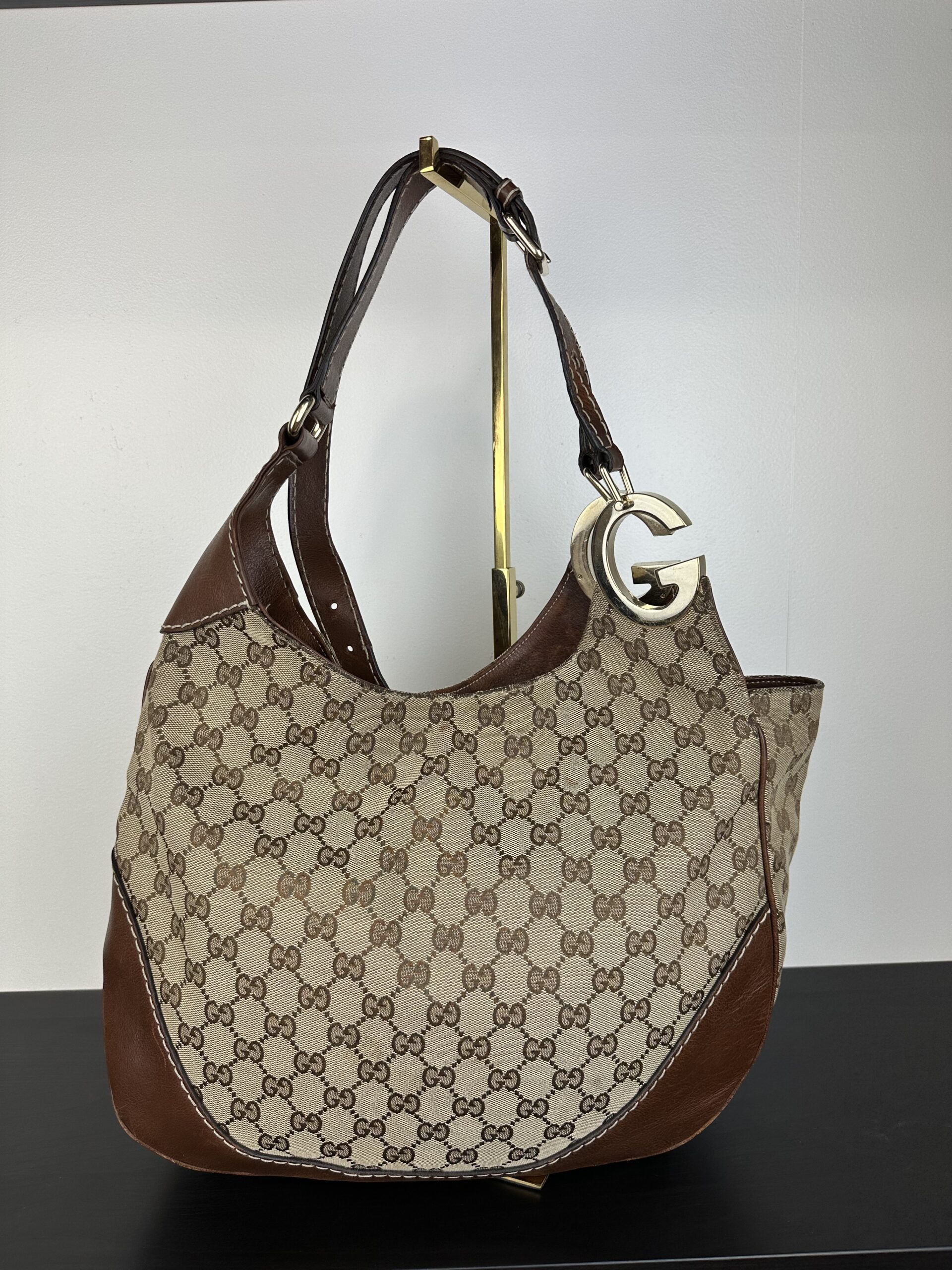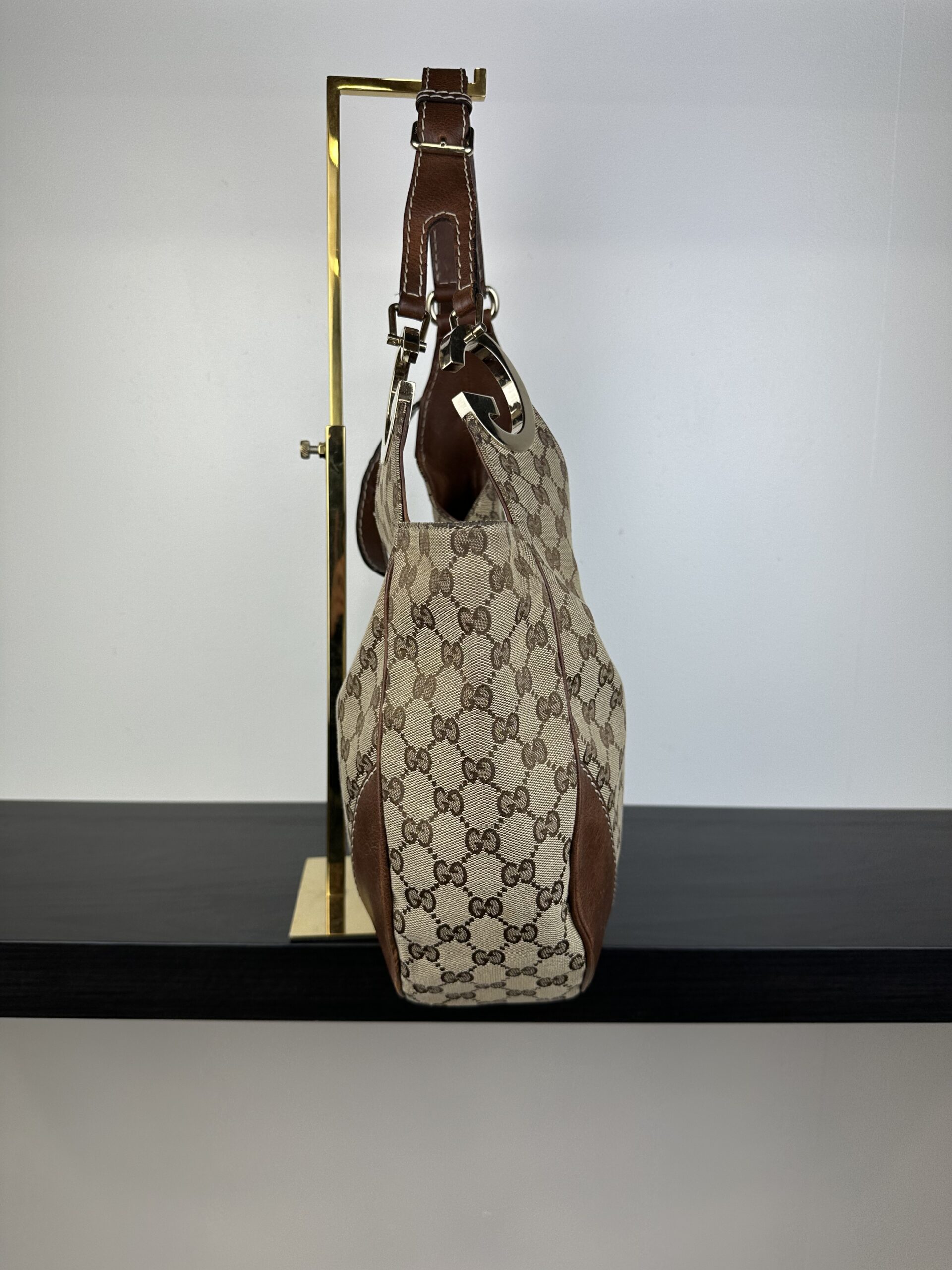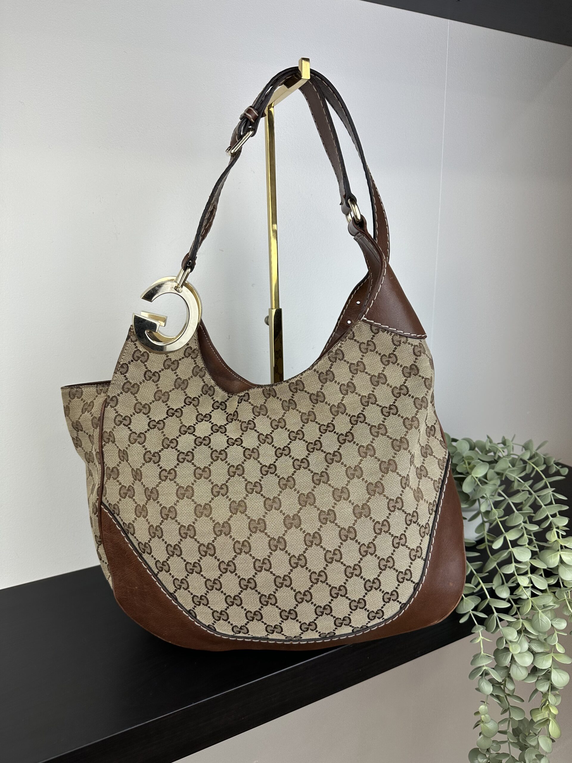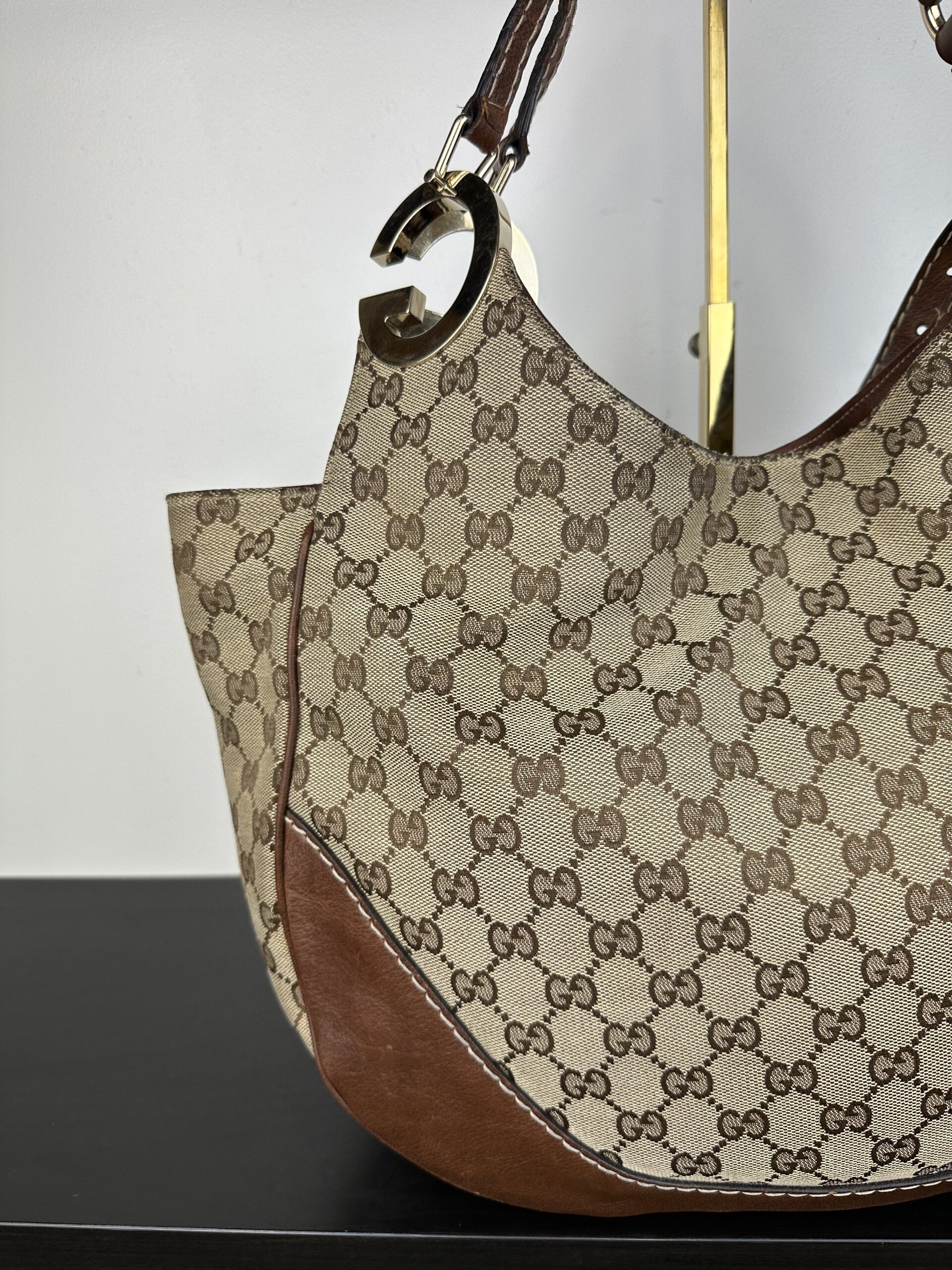 Modelo icónico de la maison, con herrajes plateados y la clásica silueta hobo. Diseño elegante y atemporal, ideal para el uso diario.