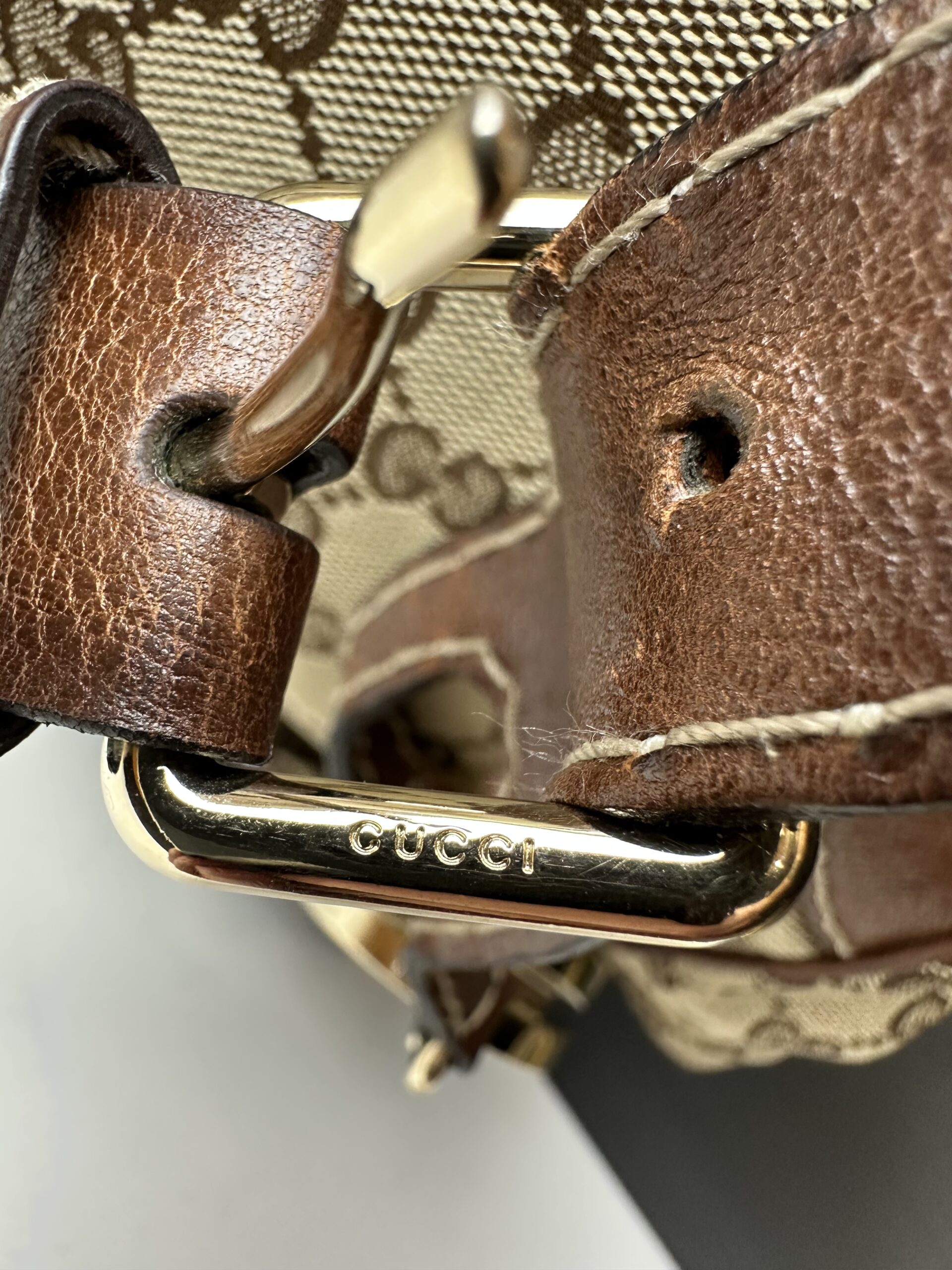 & Free ShippingBolso Gucci Hobo en lona GG canvas beige con detalles en piel azul.
