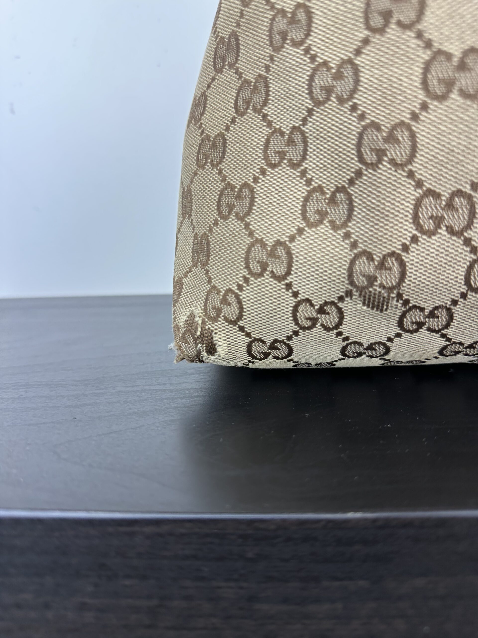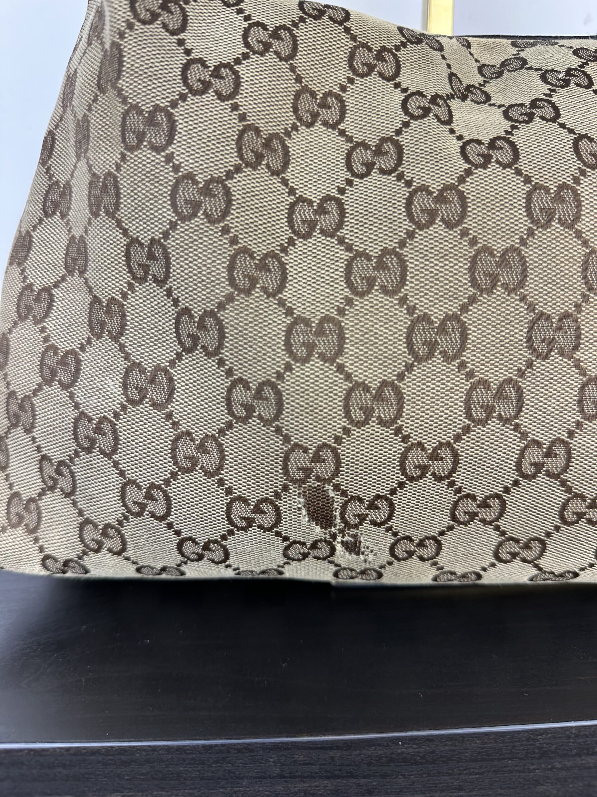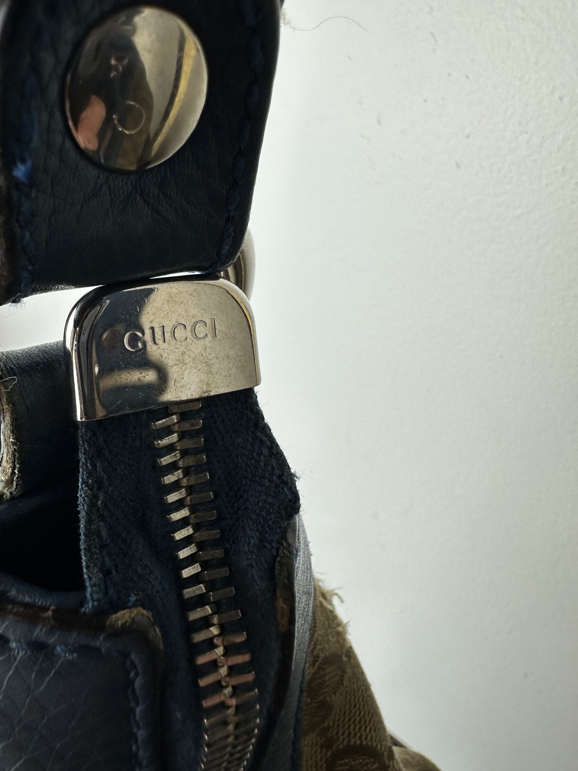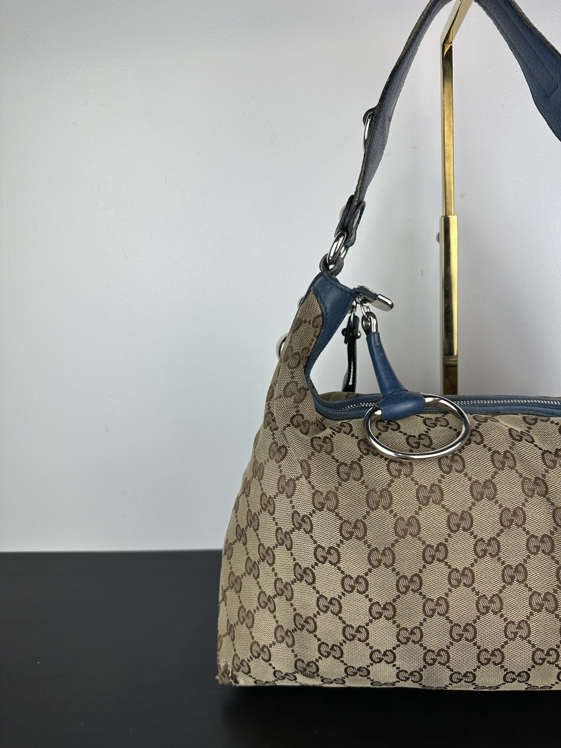 & Free ShippingBolso Gucci Hobo en lona GG canvas beige con detalles en piel azul.